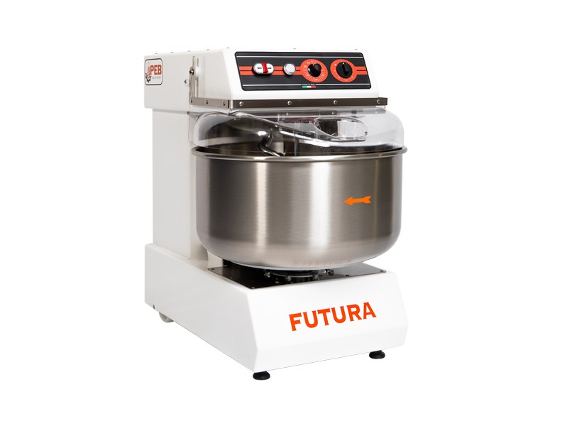 Amasadora de masa de fabricación italiana de alta calidad con capacidad de 30 o 40 kg de masa total, ideal para pizzerías y panaderías.