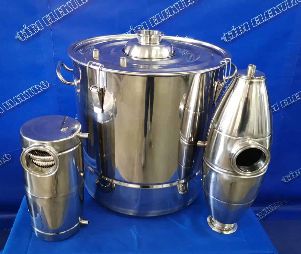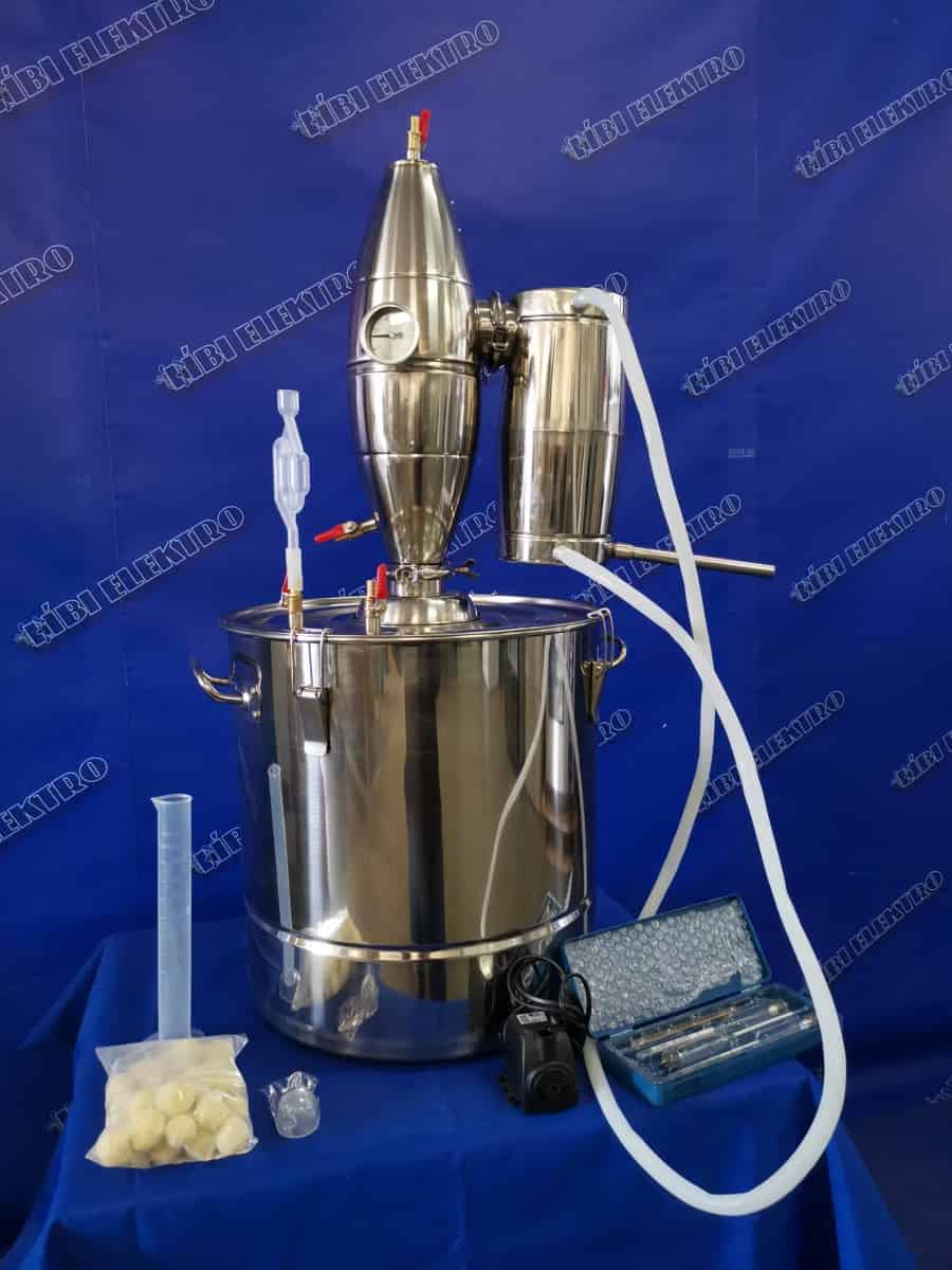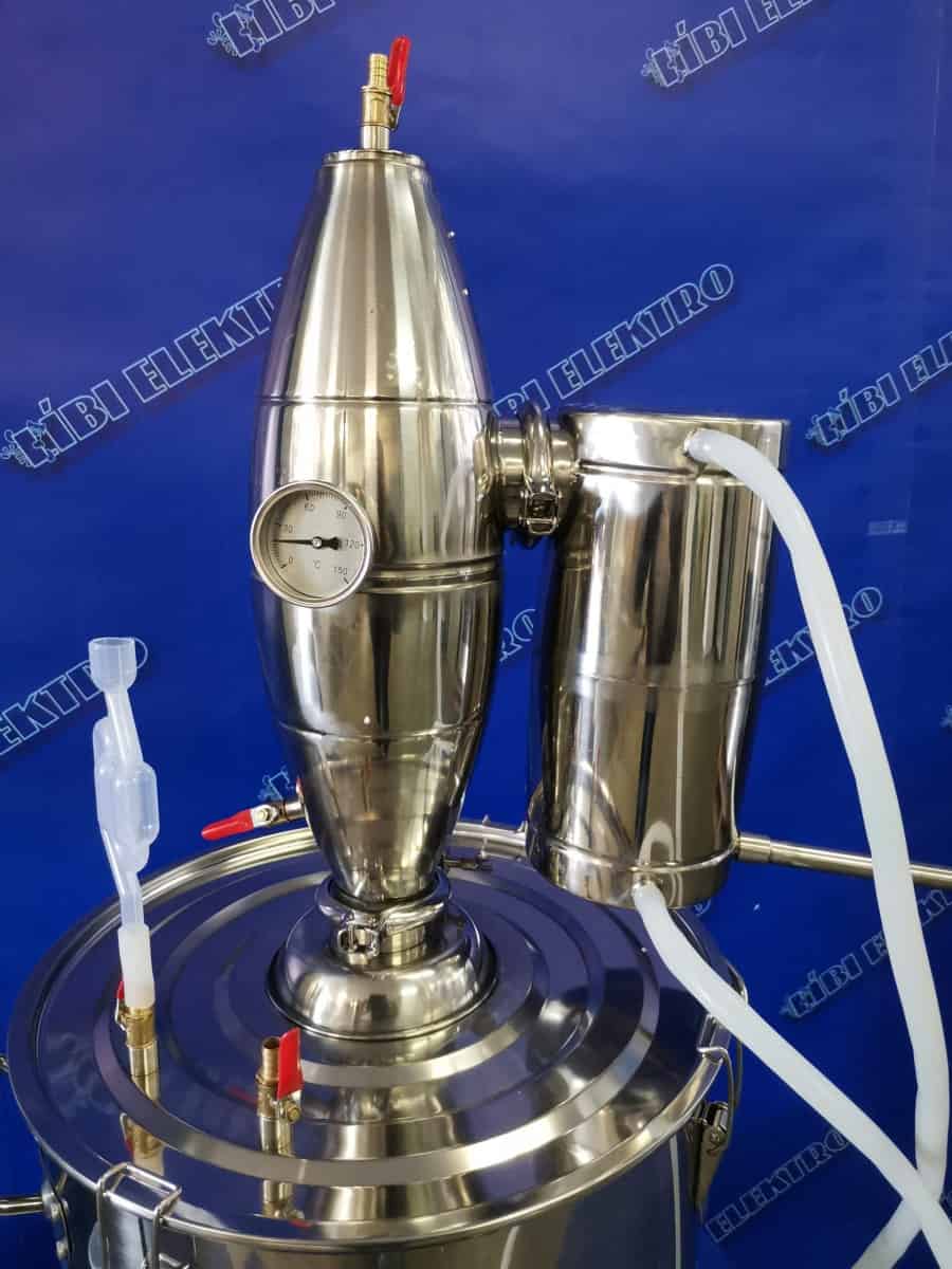 Kit de destilación completo, adecuado para principiantes y expertos. También se puede utilizar para la extracción de extractos de plantas con fines medicinales. Se puede calentar en una cocina de inducción u otras superficies de cocción gracias al fondo reforzado. El tamiz inferior evita que se queme El enfriamiento cuádruple está integrado en 2 contenedores de enfriamiento