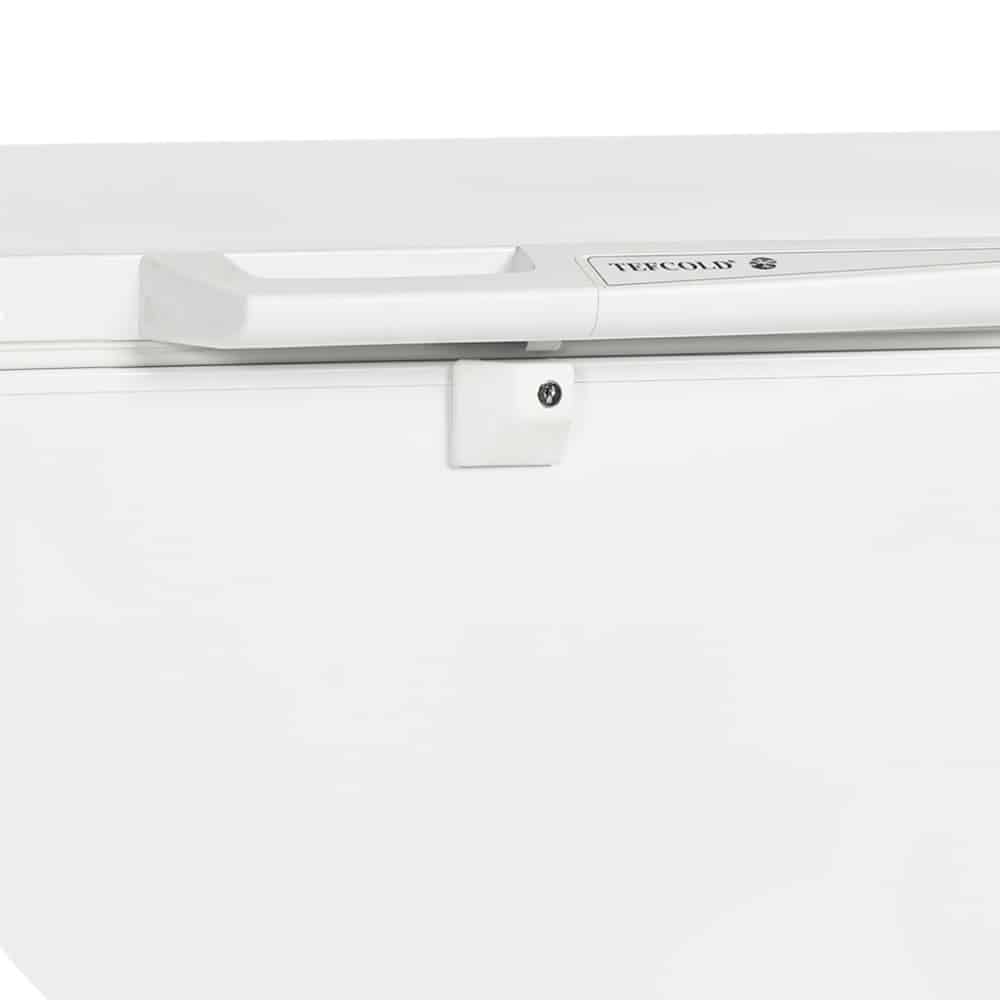 termostato electrónico con alarma, revestimiento interior de acero macizo, tapa maciza, ruedas con freno, 1 cesta de rejilla, blanco