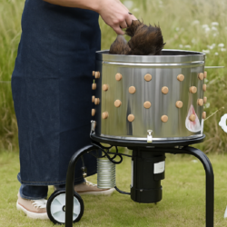 Potente desplumadora eléctrica de aves con tambor de acero inoxidable de 50,8 cm (20") y 108 dedos de goma para una eliminación rápida y suave de las plumas.