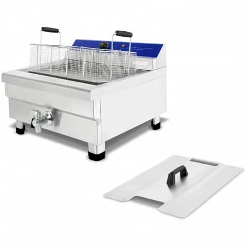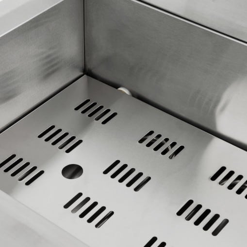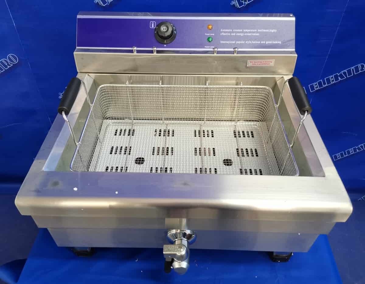 Freidora gastro con cuerpo de acero inoxidable, grifo de vaciado y 3kW de potencia. Zona fría que evita que se quemen las grasas.