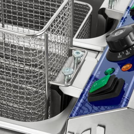 Freidora gastronómica con un volumen de 2 x 8 l, potencia 2 x 3000 W. Cesta profunda