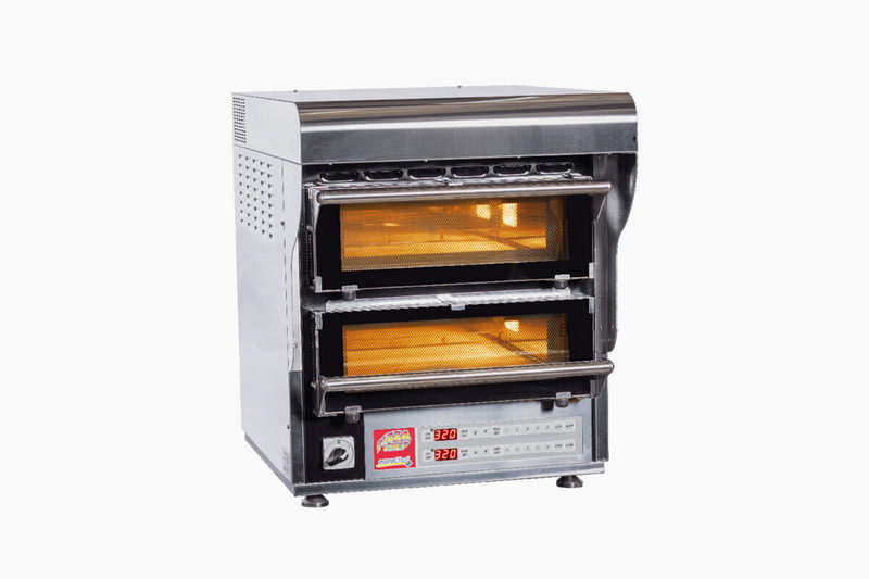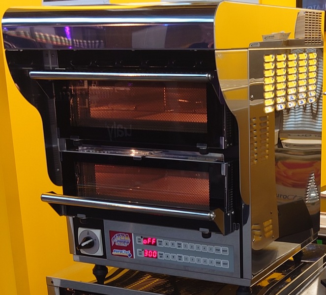 Esto significa que el horno inferior se puede utilizar de forma independiente, mientras que el horno superior sirve como cajón calentador. Los hornos Pizzachef disponen de campana extractora incorporada, por lo que pueden ser utilizados incluso por aquellos cuyo local no dispone de campana. Las temperaturas y los tiempos de cocción de los alimentos en cada horno se configuran en la pantalla electrónica situada en la parte frontal del aparato.
