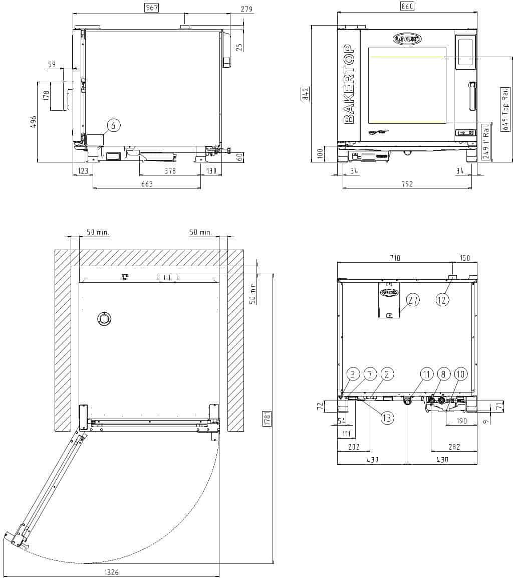 6 cajones 600×400 Bisagras izquierdas Panel de control táctil 9,5“ Voltaje: 380-415V 3N~ / 220-240V 3~ / 220-240V 1~