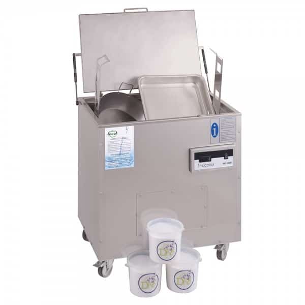 Esta es una máquina desengrasante; Un nuevo sistema de limpieza que acaba con el arduo trabajo de eliminar grasa y suciedad de los utensilios de cocina y repostería (filtros, bandejas, sartenes, ollas…). Añade higiene, desinfección y elimina bacterias. Estos depósitos desengrasantes regulan la temperatura con un termostato. Mantendrá el mismo nivel de limpieza durante un mes, las 24 horas del día. Sólo necesitarás llenar el tanque con agua, cerrarlo y dejar que el agua se caliente; una vez que esto suceda, puedes añadir detergente DK-6 (efectivo contra grasas y otro tipo de suciedad). Una vez disuelto el detergente, la máquina estará lista para su uso. Estos tanques skimmer son la solución definitiva para el carbón y la grasa que no se pueden eliminar. Este nuevo sistema le asegurará una limpieza eficiente y la máxima higiene. Ahorra agua, energía y detergentes con este nuevo sistema de limpieza. Limpia cualquier tipo de instrumento, alarga su vida y te aporta más higiene y desinfección y elimina todas las posibles bacterias. Sólo tendrás que sumergir las herramientas que deseas limpiar durante el tiempo requerido según el nivel de contaminación y enjuagar con agua. Utiliza un agente de limpieza no tóxico y biodegradable.