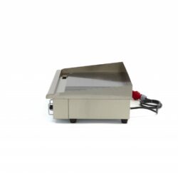 Gracias a su cuerpo de acero inoxidable y a la bandeja de goteo, esta parrilla eléctrica es fácil de limpiar. Los residuos gruesos se pueden eliminar con un cepillo o una espátula, mientras que la suciedad incrustada se quita más fácilmente calentando el aparato a 75 °C y vertiendo un poco de agua sobre la superficie de la parrilla. Se recomienda usar guantes. Todas las piezas se pueden limpiar fácilmente con un paño húmedo y un detergente suave. Gracias a sus patas de goma, esta parrilla profesional se mantiene firme y estable durante su uso.