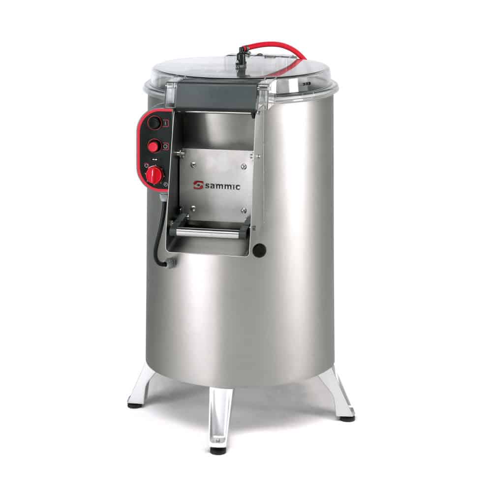 El pelador de patatas PI-30 de Sammic es un aparato para quienes aprecian la máxima profesionalidad. Está equipado con un motor potente y fiable que permite obtener hasta 720 kg de patatas peladas en una hora. La construcción fue realizada en acero inoxidable, lo que hace que el raspador PI-30 sea fuerte y resistente a las influencias externas. El dispositivo está equipado con un motor potente y confiable que funcionará bien en cualquier restaurante. Dispositivo profesional para pelar patatas, remolachas, zanahorias y otras hortalizas de raíz. Cuerpo fabricado en acero inoxidable Puerta lateral de aluminio con cierre hermético y mecanismo de seguridad Los agitadores laterales están recubiertos con abrasivo de carburo de silicio (certificación NSF) La placa base de aluminio está recubierta con abrasivo de carburo de silicio (certificación NSF) La tapa de policarbonato transparente elevable permite supervisar el proceso de pelado de verduras Panel de control impermeable con botones: START, STOP Alta resistencia a la humedad y salpicaduras de agua gracias al nivel de protección: IP65. Temporizador con ajuste de tiempo en el rango: 0-6 minutos y posibilidad de modo de trabajo ininterrumpido Bajo consumo de energía gracias a la optimización del motor Conexión de agua requerida El nivel de ruido es de aprox. 70 dB. Rendimiento del dispositivo: 600-720 kg/h Potente motor con 730 W de potencia Volumen del lote: 30 kg Peso neto: 56,9 kg