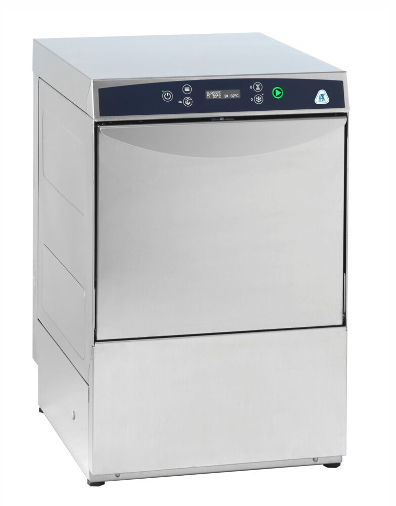 ALBA MES 400 Potente lavavajillas de barra con sistema de enjuague premium Variante: Básica ¿Qué es un sistema de enjuague premium (PRS) y por qué lo quieres? La mayoría de los lavavajillas enjuagan los platos utilizando la presión del agua directamente del suministro de agua. La calidad del lavado y del enjuague depende por tanto de la presión del agua en la red, y si es baja o fluctúa, la calidad del lavado también fluctúa. PRS es una combinación de una bomba de enjuague y una caldera atmosférica y garantiza una temperatura y presión de enjuague constantes independientemente de la presión de agua a la que esté conectado el lavavajillas. El diseño de doble pared reduce el ruido y las fugas de calor en 60%.