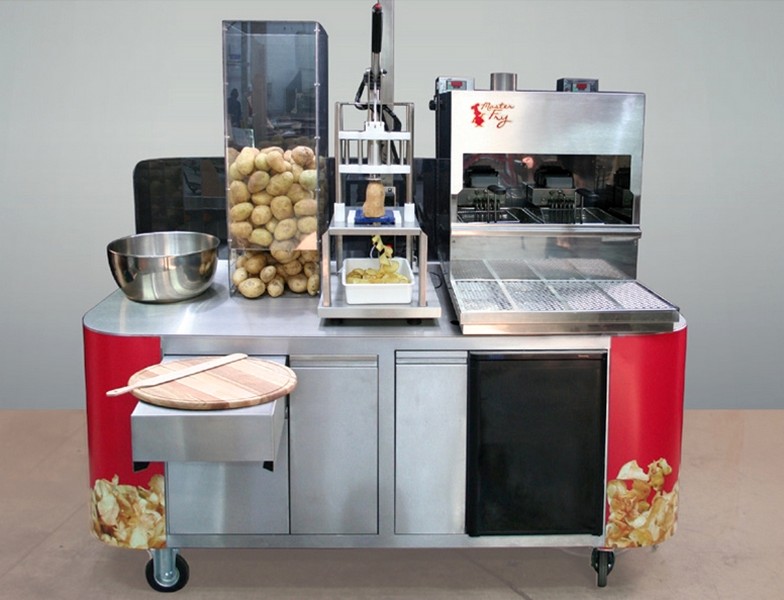 El carro permite trabajar tanto en interiores como en exteriores. Podrás optar por crear un rincón en tu local o utilizar el carrito en el exterior, incluso para participar en ferias, festivales, fiestas, manifestaciones. El carro equipado está equipado con todo lo necesario para realizar su actividad con total autonomía y está disponible con diferentes modelos de freidoras que se pueden elegir según las necesidades individuales (no incluidas).