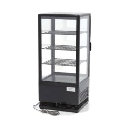 Con una capacidad de 78 litros y tres estantes, esta robusta vitrina refrigerada ofrece un amplio espacio para refrigerar y exhibir una gran variedad de productos, como sándwiches, bebidas, ensaladas y lácteos. Además de ser muy práctica, gracias a sus cuatro ventanas de cristal y la iluminación LED integrada, resulta ideal para la presentación de productos. Es perfecta para panaderías o establecimientos de hostelería que deseen mostrar a sus clientes la oferta disponible. Otra ventaja de esta mini vitrina refrigerada es que cuenta con patas resistentes e incluye una cerradura con dos llaves.