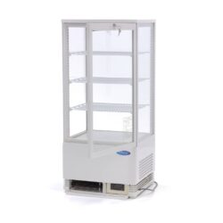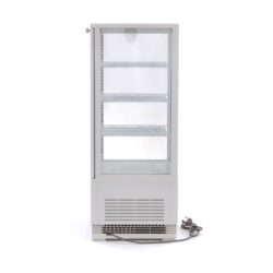 Como cualquier otro electrodoméstico gastronómico, la vitrina refrigerada necesita una limpieza regular. Gracias a su cubierta de plástico y estantes recubiertos, es fácil de limpiar. El interior y el exterior se pueden limpiar con un paño suave y húmedo. Los estantes se pueden limpiar con un paño suave y agua jabonosa. Esta vitrina refrigerada se puede ampliar con estantes adicionales y está disponible en color blanco.