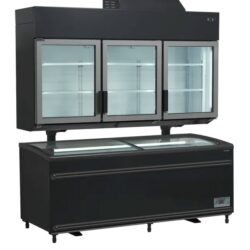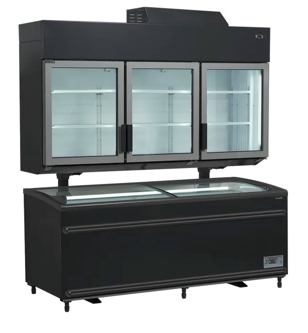 Las vitrinas MTF ofrecen una solución inteligente para aprovechar el valioso espacio disponible en el suelo. Combinan perfectamente con islas de congelación y refrigeración o congeladores de encimera. Las vitrinas MTF se pueden colocar en el centro del espacio (isla) o contra una pared. La ventilación se encuentra en el centro del dispositivo, lo que permite aprovechar toda la profundidad para la instalación incluso contra una pared; no es necesario mantener un espacio de ventilación detrás del dispositivo. La vitrina se entrega con un estante de base fija y dos estantes de rejilla ajustables que se pueden inclinar. Refrigeración ventilada dirigida de lado a centro, ideal para optimizar el espacio de almacenamiento, congelador/refrigerador, fácil conversión entre refrigeración y congelación, ideal con refrigerador/congelador de mostrador, puerta de vidrio con cierre automático y calefacción, exterior negro, descongelamiento automático, patas ajustables